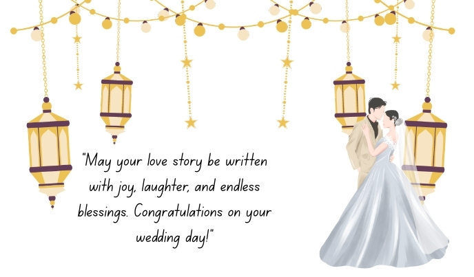 - “May your love story be written with joy, laughter, and endless blessings. Congratulations on your wedding day!”