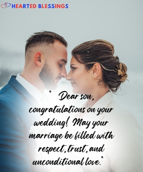 - “Dear son, congratulations on your wedding! May your marriage be filled with respect, trust, and unconditional love.”