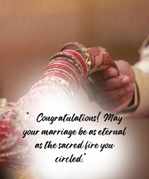 - “Congratulations! May your marriage be as eternal as the sacred fire you circled.”