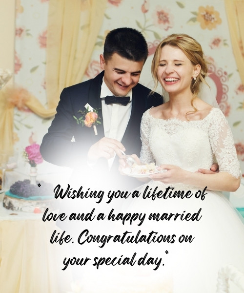 - “Wishing you a lifetime of love and a happy married life. Congratulations on your special day.”