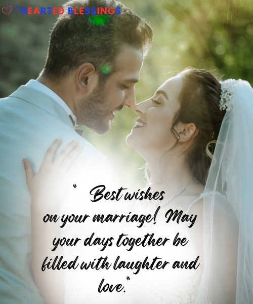 - “Best wishes on your marriage! May your days together be filled with laughter and love.”