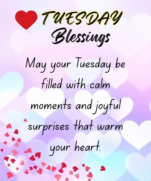 - May your Tuesday be filled with calm moments and joyful surprises that warm your heart.