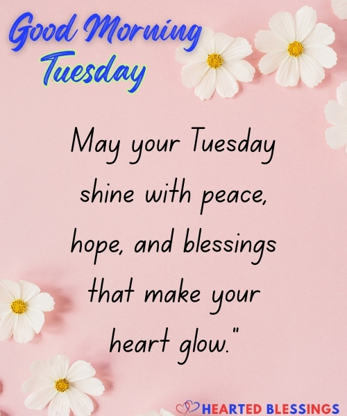 - “May your Tuesday shine with peace, hope, and blessings that make your heart glow.”