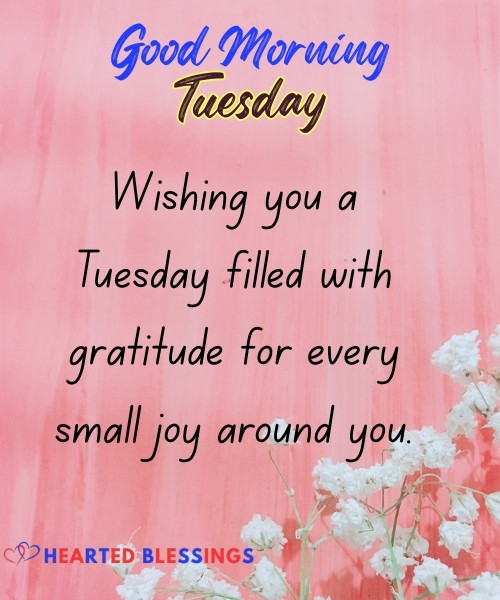 - Wishing you a Tuesday filled with gratitude for every small joy around you.