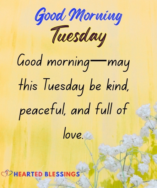 - “May this Tuesday fill your soul with kindness, your mind with calm, and your heart with love.”