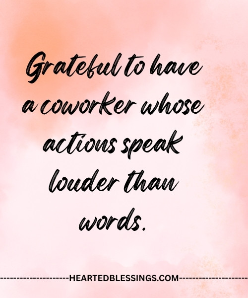- “Grateful to have a coworker whose actions speak louder than words.”