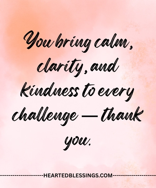 - “You bring calm, clarity, and kindness to every challenge — thank you.”
