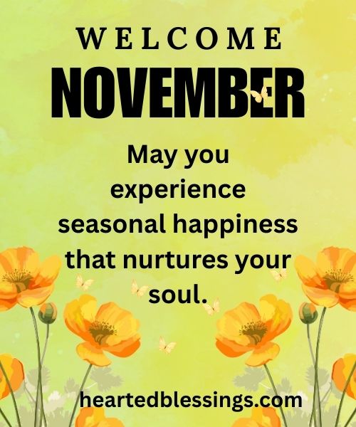 “Happy New Month! May your November be peaceful, productive, and richly blessed with reasons to be thankful.”