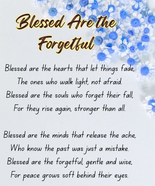 The word “blessed” means lucky or favored.The word “forgetful” here doesn’t mean careless. It means people who let go of things that hurt them. So the meaning becomes: