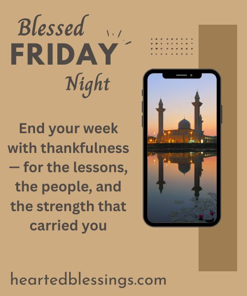 End your week with thankfulness — for the lessons, the people, and the strength that carried you. Offer a word of peace to others; a single “Have a blessed Friday night” can lighten hearts and strengthen connections.