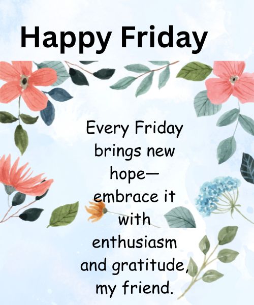 8. Every Friday brings new hope—embrace it with enthusiasm and gratitude, my friend.