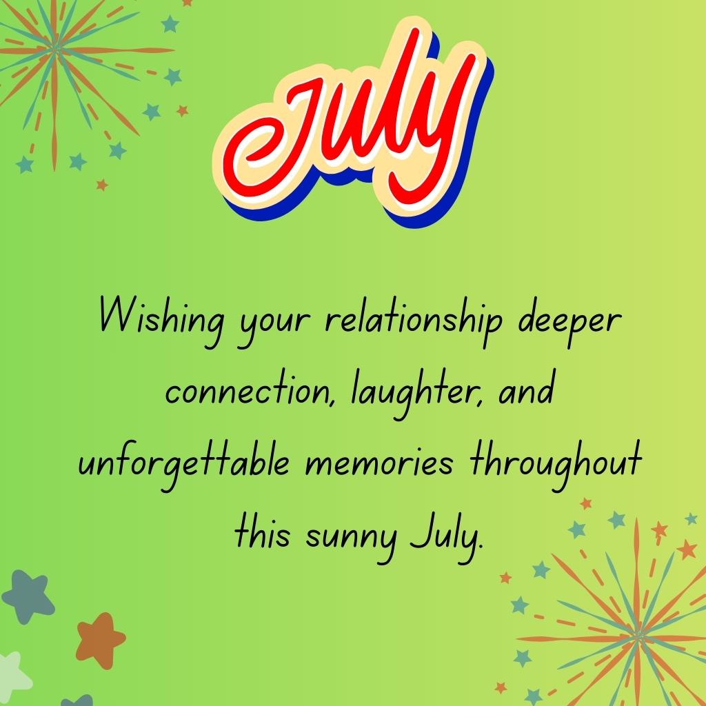 π Wishing you a July full of love, smiles, and cherished memories that make your relationship bloom like summer flowers.
