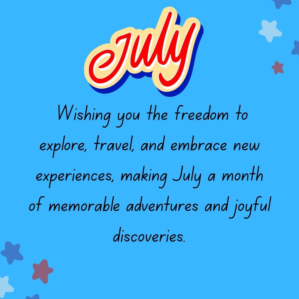 π Freedom and Adventure: Wishing you the freedom to explore, travel, and embrace new experiences, making July a month of memorable adventures and joyful discoveries.