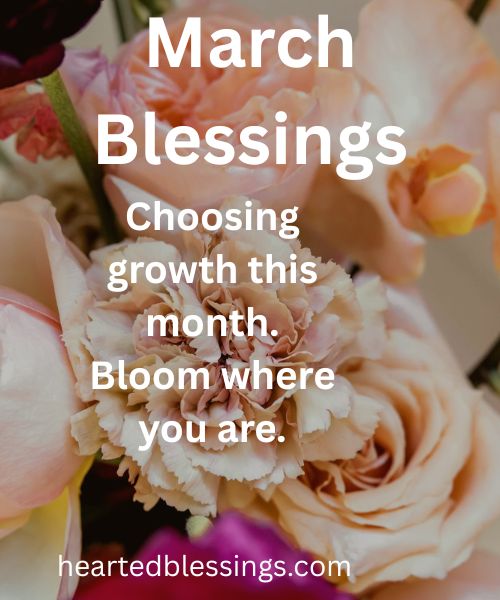 Unique March blessings focus on rebirth, nature blooming, spring cleaning the mind, and the transition from darkness to light as the season changes.