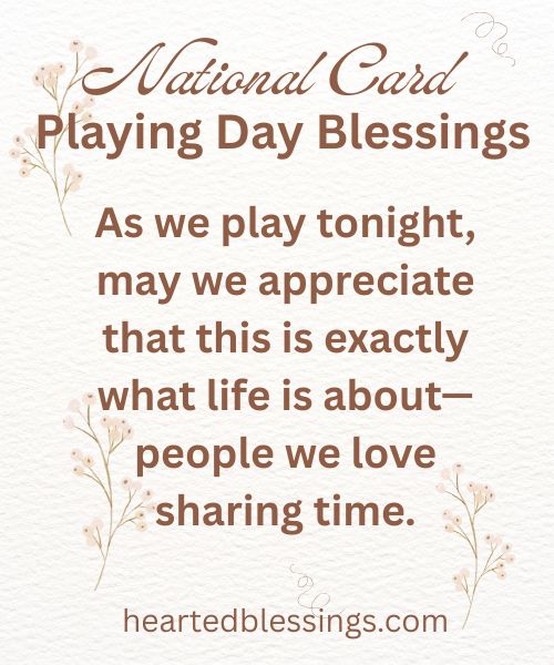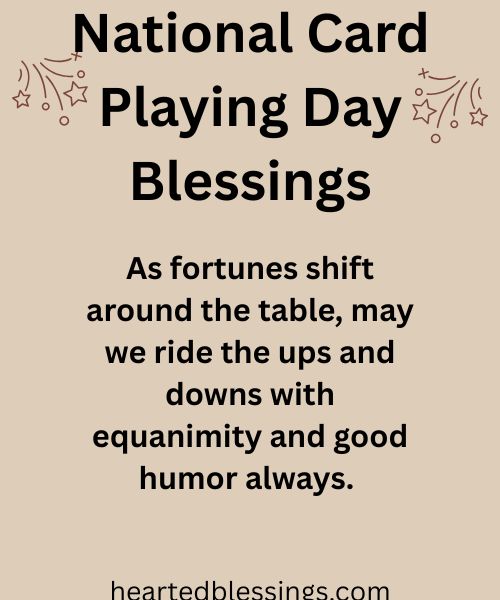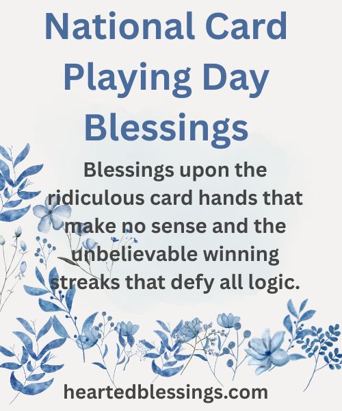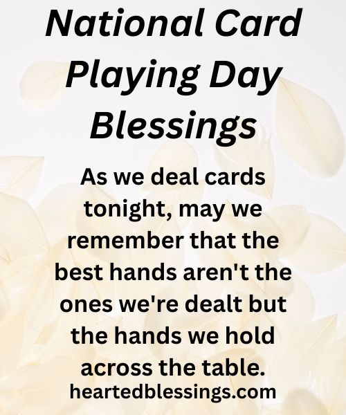 NATIONAL CARD PLAYING DAY blessings help us express gratitude for these precious moments of connection and the relationships that make our lives richer and more meaningful. Whether you’re playing poker, bridge, rummy, or go fish, the real prize isn’t winning—it’s the time spent together, the stories shared, and the memories created around the card table that last forever in our hearts.