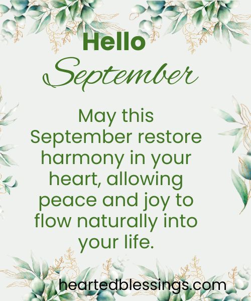 - May this September restore harmony in your heart, allowing peace and joy to flow naturally into your life.