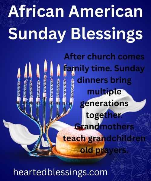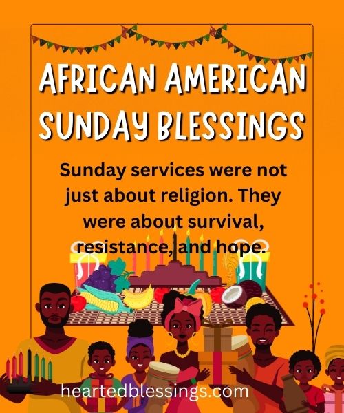 These blessings blend African spiritual traditions with Christian teachings. Our ancestors brought strong spiritual practices from Africa. During slavery and through segregation, they held onto faith as a source of strength. Sunday became especially important because it was often the only day enslaved people could rest and worship together.